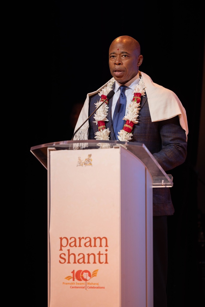 - On October 16th, the Mayor of New York City, Eric Adams joined in the centennial celebrations of His Holiness Pramukh Swami Maharaj in New York.